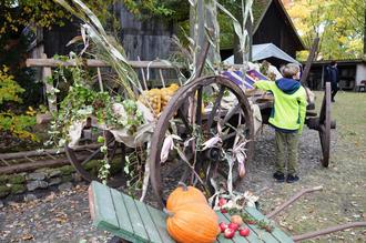 Zum Erntedankfest war ein Wagen mit Früchten geschmückt worden.
