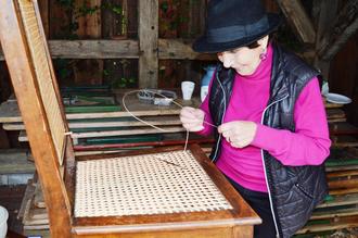 Karin Livingston führt immer wieder gerne vor, wie viel handwerkliches Können und Geduld zum Stuhlflechten gehören.