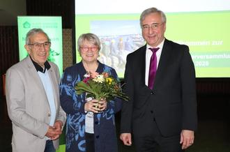 Der Ehrenvorsitzende Dr. Omar Mahjoub (links), und Martin Kupper gratulieren Angela Schürzeberg zur Wiederwahl.
