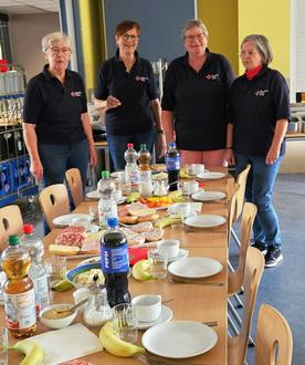 Dank der ehrenamtlichen Helferinnen können sich die Blutspender nach der Spende an den nett und üppig bestückten Tisch setzen.