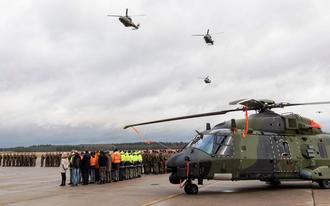 Der Überflug von drei NH90 und einem A400M der Luftwaffe während des feierlichen Appells war eine besondere Ehrung für die Kommandeure.