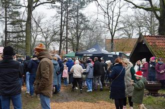 gs. Kuschelig voll und eng war es auf dem Heimathausgelände, für Eltern mit Kinderkarre manchmal vielleicht etwas zu voll und für kleine Hunde sowieso… Aber die Stimmung war bestens. Gegen die leicht feuchte kühle Luft halfen immer heiße Getränke und hungrig vom Platz gehen musste auch niemand.