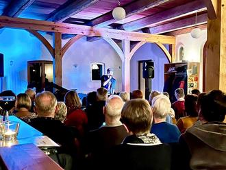 In der Pause versorgten sich die Gäste mit Getränken, Laugenbrezeln und guten Gesprächen im Café oder draußen an der Feuerschale. Auch das zweite Set wurde von den beiden Vollblutmusikern wunderbar gestaltet, so dass das begeisterte Publikum noch zwei Zugaben erwünschte und dann nach zweieinhalb Stunden nachdenklich, beseelt oder glücklich nach Hause ging.