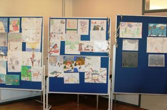 Stellwände mit den Bildern der Kinder vom Malwettbewerb.