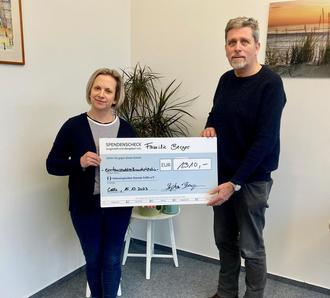 Liane von Hoff nimmt gerne den Spendenscheck der Familie Berger entgegen.