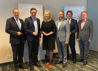 Sie informierten die Gäste des Neujahrsempfangs über aktuelle Themen: (von links) Henning Otte, MdB, CDU-Landesvorsitzender Sebastian Lechner, Bürgermeisterin Katharina Ebeling, OV-Vorsitzender Henrik Heesch, Landrat Axel Flader und Bernd-Wilhelm Winkelmann, Fraktionsvorsitzender der CDU im Gemeinderat.
