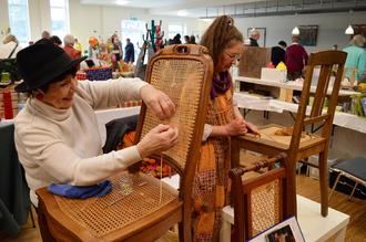 Karin Livingston und Marion Theiße zeigten die Kunst des Stuhlflechtens.
