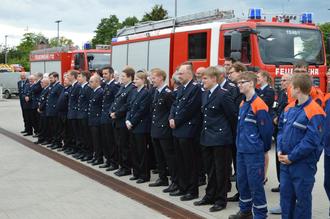 Angetreten! Die Mitglieder der Feuerwehr lauschten den Übergabeworten.