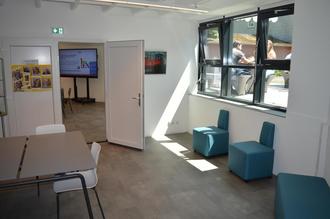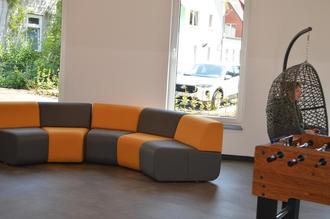Ein großer Raum ist für die Aktivitäten der Jugend gedacht, mit Hängesesseln und viel Platz zum Chillen. Und es kann Tischfußball gespielt werden!