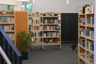 Die Bücherei erstreckt sich über zwei Ebenen. Bibliotheksleiterin Kerstin Henning konnte sich bei der Eröffnung über einen (symbolischen) Scheck in Höhe von 500 Euro freuen, überreicht von einer Repräsentantin der Bibliotheksgesellschaft Celle.