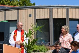 Pastor Nietzke von der benachbarten Kleinen Kreuzkirche nahm die Segnung des Haues vor. „Es liegt Zukunft in der Luft!“ Ein solcher Ort sei ein in Stein gehauenes Versprechen: „Du bist willkommen, so wie du bist.“ Es sei ein Ort der Begegnungen. Gott sei immer dort, wo Menschen zusammenkommen.