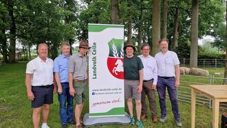 Um 11 Uhr fand auf dem Sebandshof bei Familie Ripke die offizielle Eröffnung der Tour de Flur statt. Landrat Flader stellte in seinem Grußwort die Vielfalt der Celler Landwirtschaft in den Vordergrund. Landvolk Vorsitzender Christoph Düvel dankte den teilnehmenden Betrieben und Sponsoren der Tour. Michael Gebers, stellvertretender Bürgermeister der Gemeinde Faßberg, freute sich, dass die Tour durch das Gemeindegebiet führt und die ansprechende Landschaft zeigt. Gastgeber Henning Ripke und Thomas Weckerle-Ripke luden alle anwesenden Gäste zu einer Hofführung ein, bei denen sie über ihre Schafe und die Herdenschutzhunde informierten.