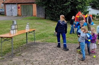 Auch beim Dosenwerfen konnten die Kinder ihre Geschicklichkeit unter Beweis stellen.