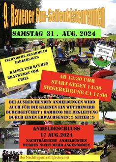 Das eine große Fest in Baven ist vorüber, doch es folgt das nächste Event: das 9. Bavener Fun-Seifenkistenrennen am 31. August.
