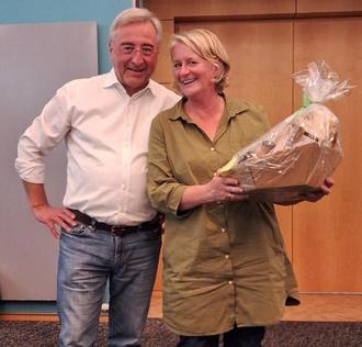 Reichlich beschenkt wurde Susanne von Zimmermann zum Abschied. Auf dem Foto gemeinsam mit Vorstand Martin Kupper.