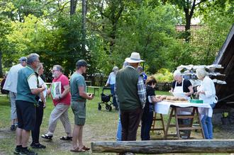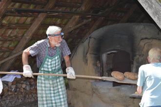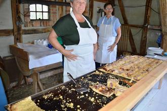 Gegen 14.00 Uhr gab es den ersten Kuchen. Nachdem alle Bleche gebacken waren, schob der 1. Vorsitzende des Förderkreises, Joachim Webel, die ersten Brote in den Ofen. Alles fand reißenden Absatz. Viele Gäste machten es sich unter den alten Eichen gemütlich und genossen Butterkuchen, Kaffee und Tee. Der letzte Backtag in diesem Jahr findet am 5. Oktober zum Erntedankfest statt.