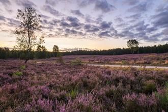 Angelbecksteich, Morgenstimmung über der blühen Heide