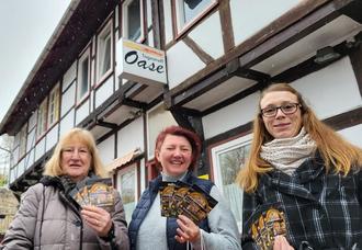 In ihrer letzten Jahreshauptversammlung hatten die Mitglieder des DRK-Ortsvereins Katlenburg beschlossen, 1000 Euro in Form von Einkaufsgutscheinen an den Northeimer Tagestreff Oase zu spenden. Vereinsvorsitzende Elda Pothmann (links) und ihre Stellvertreterin Stefanie Politz-Thomas (rechts) besorgten die Gutscheine im Wert von 20 und 30 Euro im Edeka-Markt Schnabel. Mit großem Dank nahm Einrichtungsleiterin Beate Wernicke (Mitte) die Gutscheine Ende November entgegen und berichtete, dass zwischen 25 bis 70 Menschen täglich die Oase besuchen. In der Adventszeit sind solche Gutscheine für die Besucher willkommene Gaben.