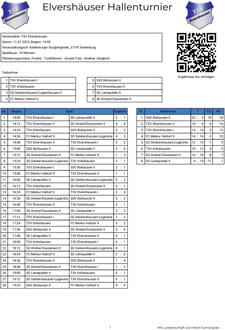 Vor ca. 150 fußballbegeisterten Zuschauern in der Katlenburger Burgberghalle konnte sich die SSG Bishausen II in einem ausgeglichenen Teilnehmerfeld durchsetzen. Besonders dazu beigetragen hat Michel Bajanow, der von den 22 bishäuser Treffern 11 selbst beisteuerte und damit Torschützenkönig wurde. Einzig gegen den am Ende drittplatzierten TSV Elvershausen I mussten sich die Bishäuser mit 2:1 geschlagen geben. Nach 4 Jahren Pause trat der Gastgeber TSV Elvershausen diesmal mit zwei Mannschaften an. Die zweite Mannschaft ließ einzig gegen den späteren Turniersieger (1:4) und gegen den FC Merkur Hattorf II (1:1) Punkte liegen und landete auf dem zweiten Platz. Der TSV Elvershausen blickt auf ein ein faires und gelungenes Turnier zurück, bedankt sich bei den Schiedsrichtern, Helfern sowie den Mannschaften, die teilgenommen haben und freut sich bereits auf das nächste Jahr.
