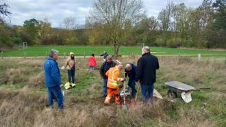 Nachdem im Rahmen des BUND-Angebots „Abenteuer Streuobstwiesen“ die Schulkinder im Ferienprogramm u.a. die Pflanzlöcher für den Apfel- und Birnenbaum ausgehoben hatten, konnte der derzeitige Ortsrat jüngst die Bäume unter fachlicher Leitung von „Seniorgärtner“ Wolfgang Heere pflanzen. Nach der Pflanzung wurde noch ein Schutzanstrich an den Obstbäumen angebracht.