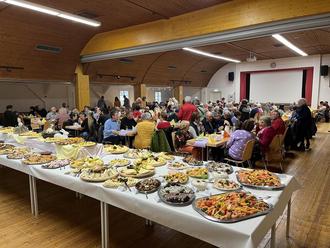 Der Ortsrat Berka hatte zusammen mit weiteren Helferinnen und Helfern das Frühlingsfrühstück organisiert. Unser ortsansässige Partyservice Borchert tischte ein äußerst reichhaltiges Buffet auf, welches sehr schmackhaft war und keinerlei Wünsche offenließ. Ortsrat und seine Helfer steuerten frisch gemachtes Rührei sowie Bacon und Nürnberger Würstchen dazu bei. Ortsbürgermeister Eckhard Steinmetz eröffnete das Frühstück mit einer kurzen Ansprache und betonte die Wichtigkeit von Gemeinschaft und Zusammenhalt im Dorf. "Es ist schön zu sehen, wie viele von Ihnen/Euch heute hier sind", sagte er. Besonders erfreulich war die rege Teilnahme von Familien mit Kindern. Er dankte der Forstgenossenschaft Berka, die mit einer unerwarteten Geldspende von 1000€ das Frühstück bezuschussten sowie auch einem weiteren anonymen Spender. Durch einen Rabatt unterstützte Partyservice Borchert ebenfalls das Frühstück. Nach der Ansprache des Ortsbürgermeisters gab es noch ein paar geistliche Worte und Gedanken vorgetragen von Pastor Harald Möhle, die mit einem gemeinsamen Vaterunser abgerundet wurden. Anschließend wurde gemeinsam gefrühstückt.