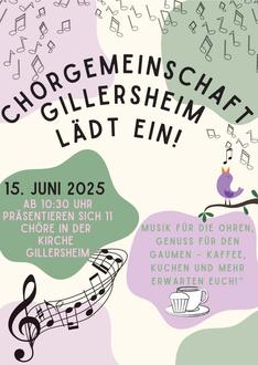 Vor annähernd fünfzig Jahren schlossen sich die Gillersheimer Sänger vom Männergesangverein und vom Handwerkerbildungsverein zu einer Chorgemeinschaft zusammen. Aus diesem Anlass veranstaltet die Chorgemeinschaft am 15. Juni 2025 ab 10:30 Uhr einen Chortag.