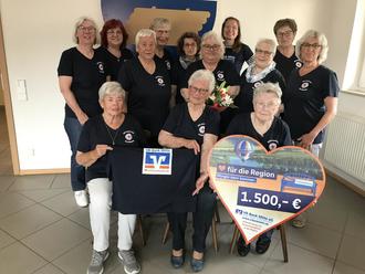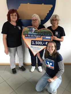 Da staunte die 1. Vorsitzende Birgit Beckmann vom DRK Ortsverein Elvershausen nicht schlecht, als sie von der VR-Bank Mitte einen Anruf erhielt, dass der Ortsverein bei der Aktion "Mit Herz für die Region" den 1. Preis für Vereinskleidung in Höhe von 1.500,00 Euro gewonnen hatte. Auf Initiative des DRK Mitglieds (und treuer Stuhlkreisteilnehmerin) Regina Bertram hatte der Ortsverein an der Verlosung im Landkreis Northeim teilgenommen. Jetzt wurden - unter anderem für das 80-jährige Vereinsjubiläum des TSV Elvershausen (6.6. - 9.6.2025) - T-Shirts angeschafft. Bei einem Übungsabend der Stuhlkreisgruppe überreichte Julia Niesmann (Regionaldirektorin von der VR-Bank Mitte) den Gewinn und nahm auch mit Spaß an den Übungen teil. Regina Bertram erhielt noch als Dankeschön einen Blumenstrauß in den Vereinsfarben rot/weiß.