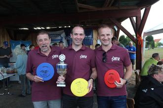 Das zweite Sommerfest des TSV Katlenburg fand vor kurzem auf dem Katlenburger Sportplatz am Sportheim statt. Das kleine Familienfest bot unter anderem das erste Katlenburger Discgolfturnier. Ein Spiel, das mehr Spaß macht, als es erwarten lässt. Insgesamt neun Mannschaften nahmen daran teil und am Ende ging die 1. Mannschaft vom Katlenburger Musikverein mit Reinhard Lehrke, Jens Lehrke und Ralf Lehrke (von links auf dem Bild -Vater mit seinen Söhnen-) als Sieger hervor und erhielt den Pokal, der als Wanderpokal nun bis zum Sommerfest im nächsten Jahr (am letzten Samstag im August) im Besitz des Musikvereins bleibt.