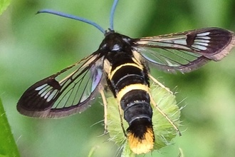 Im Garten einer aufmerksamen Naturbeobachterin wurde ein Glasflügel-Schmetterling entdeckt.