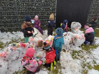 Nachdem der Winter uns in den letzten Wochen dieses herrliche Wetter mit frostigen Temperaturen und reichlich Schnee beschert hat, haben es sich die kleinen und großen Waldmäuse im Wald, in der beheizten Mäusehöhle, im Jugendzentrum und im Kindergarten Maulwurfshügel gemütlich gemacht. Hier gab es die unterschiedlichsten Dinge zu entdecken und zu erleben. Ob Tischfußball und Gesellschaftsspiele spielen im Jugendzentrum, Bewegungsspiele in der Turnhalle vom Maulwurfshügel, Spielen auf dem Spielplatz des Maulwurfhügels oder das Schlittenfahren und kreative arbeiten mit Schnee und Eis im Wald. Die vielen tollen Ideen, die die Kinder und ihre Erzieherinnen haben begeistern mich immer wieder. Vor einigen Tagen habe ich lauter bunt bemalte Schneekugeln und Fußabdrücke im Wald entdeckt. Es sah aus als wären lauter Regenbogenwesen durch den Wald gewandert. Das haben die Kinder mit ihren Tuschkästen gezaubert.