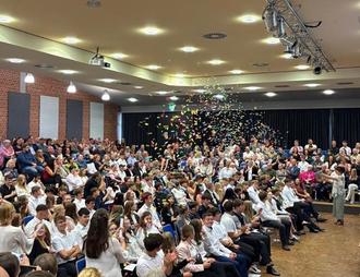 Am 27.06. fand die Entlassfeier der Abschlussklassen an der ObS Lachendorf statt, die in diesem Jahr als Kunstauktion gestaltet war. Die Lehrkräfte Johanna Knoop und Torsten Löschmann führten als Auktionäre durch ein buntes und abwechslungsreiches Programm. Oberschuldirektorin Sandra Beckermann stellte in ihrer Rede fest, dass der heutige Tag weniger ein Abschluss, sondern viel mehr ein Aufbruch in einen neuen Lebensabschnitt sei. Des Weiteren bedankte sie sich bei allen Abschlussschülerinnen und Abschlussschülern für die Umgestaltung und Neubepflanzung des Schulhofes: „Das war eine großartige Leistung, die ihr nicht für euch, sondern für eure Mitschüler gemacht habt,“ stellte Beckermann beeindruckt fest. Diakonin Martina Ehlers betonte in ihrer Rede, dass man als Mensch nicht perfekt sein müsse, sondern jeder Mensch mit seinen Ecken und Kanten genau richtig sei. Für die musikalische Untermalung war Musiklehrerin Birte Bähre verantwortlich, die gemeinsam mit der Big-Band-AG eine ganze Reihe von Musikstücken vorspielte. Ein weiteres Highlight war ein Schwarzlichttheaterstück, welches gemeinschaftlich von Schülerinnen und Schülern der Jahrgänge 6, 7 und 9 präsentiert wurde. Für den Schulelternrat sprach Frau Temme. Die Klassenlehrkräfte der Abschlussklassen Benjamin Bürsing, Katrin Werner, Eike Meyer-Kirchhoff, Patricia Degler, Nicole Zain, Kerstin Kahn, Christina Wrede und Sandra Chivers bedankten sich mit persönlichen Worten bei ihren Klassen für die gemeinsame Zeit. Höhepunkt der Feier war die Verleihung der Zeugnisse, die von den Klassenlehrkräften gemeinsam mit der Schulleiterin vorgenommen wurde. Als Schulbeste des Realschulzweiges wurde Mette Töllner geehrt. Sie möchte nun das Abitur im Bereich Ökotrophologie/ Ernährung erwerben. Raydaa Abouzaid, Schulbeste des gymnasialen Zweiges, ist es wichtig, einen Beruf zu finden, in dem sie „anderen Menschen helfen“ kann. Als Schulbester des Hauptschulzweiges Jahrgang 9 wurde Julius Korth geehrt. Er möchte nach den Sommerferien an der ObS Lachendorf den Realschulabschluss erwerben. Den hat sich die Schulzweigbeste des 10. Jahrgangs des Hauptschulzweiges, Emma Henrike Baar, bereits in diesem Jahr gesichert. Emmas neues Ziel: die Fachhochschulreife im Bereich Sozialpädagogik.