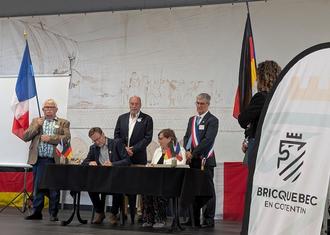 Aus diesem Anlass haben sich der Freundschaftskreis Bricquebec - Lachendorf (FBL) auch, weil der FBL seit 30 Jahren besteht, sowie die Jugendspielgemeinschaft (JSG) Lachtetal mit jeweils einem Bus auf den Weg in die Partnerstadt Bricquebec-en-Cotentin gemacht. So empfingen der Bürgermeister der Stadt Bricquebec-en-Cotentin, Denis Lefer, das Comité de Jumelage unter der Vorsitzenden Ghislaine Brosseron, sowie die französischen Gastgeber rund 100 Gäste aus der Samtgemeinde Lachendorf im Schlosshof in Bricquebec. Nach einer kleinen Stärkung folgte die Verteilung auf die Quartiere.