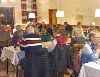 Danach wurden Weihnachtslieder angestimmt und eine kleine Weihnachtsgeschichte vorgelesen. Die Wirtin servierte leckeren Burgunderbraten mit Beilagen und zur Abrundung des Essens einen Nachtisch.