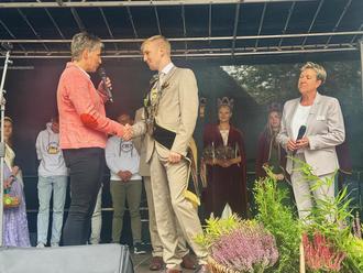 Ein Jahr lang hatte Tjarc die Krone getragen, und er tat es mit Leidenschaft. „Unfassbar viel Spaß“ habe er gehabt, bekannte er im Interview mit der stellvertretenden Bürgermeisterin Birte Delventhal, die kurzfristig für den erkrankten Bürgermeister einsprang. Spontan sei er damals an das Amt gekommen, „doch gegangen bin ich nie ungern. Es war wie eine große We-Familie.“ Besonders bewegend: seine Worte an die anwesenden Königinnen, die ihn durch die Zeit begleitet hatten. Ein Privileg sei es gewesen, sie alle kennenzulernen – und eine große Freude, vor allem mit der Kartoffelkönigin Ida Ölmann so eng verbunden gewesen zu sein.