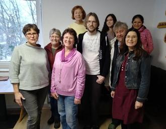 8 der 10 Absolventen des Schulungskurses, vorne links Leiterin Christina Hirschmann
