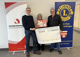 Der Hauptgewinn aus dem Weihnachtskalender-Verkauf 2025 des Lions Club Schneverdingen in Höhe von 1.000 € geht an Marianne Martens aus Wesseloh. Das Geld wurde gesponsert vom Schneverdinger Versicherungsverein a.G. und von dessen Vorstandsmitglied Carsten Witte zusammen mit Club-Präsident Holger Richter übergeben.