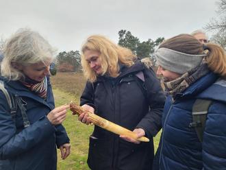 Kursteilnehmerinnen begutachten einen Mammutzahn - ein eindrucksvolles Relikt aus der eiszeitlich geprägten Landschaft, die die Lüneburger Heide bis heute formt.