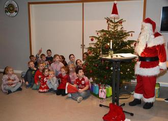 Kurz darauf erschien der Nikolaus und verteilte Beutel mit Süßigkeiten an die Kleinen. Er las eine besinnliche Weihnachtsgeschichte vom „Weihnachtsmann im Bahnhof“ vor. Zum Abschied wurde er mit viel Applaus bedacht.