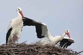Bereits einen Tag zuvor waren zwei weitere Weißstörche an den anderen Nisthilfen des Zentrums eingetroffen. Einer von ihnen schaute am Tag davor auch auf dem Schornsteinnest vorbei, kehrte jedoch immer wieder zu seinem eigenen Horst auf der Wiese des Geländes zurück. Nun warten die Storchenmännchen auf die Ankunft ihrer Partnerinnen, bessern ihre Nester aus und trotzen dem noch winterlichen Wetter.
