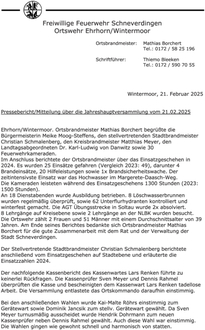 Am Ende seines Berichtes bedankte sich Ortsbrandmeister Mathias Borchert für die gute Zusammenarbeit mit dem Rat und der Verwaltung der Stadt Schneverdingen. Der stellvertretende Stadtbrandmeister Christian Schmalenberg berichtete anschließend vom Einsatzgeschehen auf Stadtebene und erläuterte die Einsatzzahlen 2024.