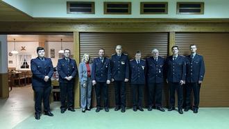 Von links nach rechts: Kai-Malte Röhrs, Stellvertretende Stadtbrandmeister Christian Schmalenberg, Bürgermeisterin Meike Moog-Steffens, Ortsbrandmeister Mathias Borchert, Ulrich Bleeken, Thorsten Düring, Friedrich Wiedemann, Matthias Meyer, Marius Meyer
