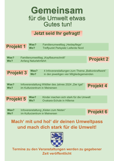 Bei den insgesamt 6 verschiedenen Veranstaltungen können alle Teilnehmenden, ob Groß oder Klein eine Stempelkarte bzw. Stempel von der Samtgemeinde Meinersen erhalten. Wer an min. 4 von 6 Veranstaltungen teilgenommen hat, erhält zum Abschluss von der Verwaltungsleitung eine Urkunde und ein kleines Präsent. Damit möchte sich die Samtgemeindebürgermeisterin Karin Single bei den Teilnehmenden für die Unterstützung und Mithilfe für das Projekt „Gemeinsam für die Umwelt etwas Gutes tun!“ bedanken und hofft auf eine rege Teilnahme an den Projekten.