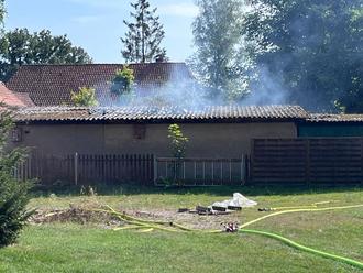 Ettenbüttel. Alarm für die Feuerwehren in der Samtgemeinde am Montag, den 02.09.2024 um kurz nach halb drei. Unklarer Rauch im Hirtenwinkel in Ettenbüttel lautete die Alarmierung, bereits auf Anfahrt teilte die Leitstelle mit, dass es mittlerweile mehrere Anrufe gegeben hätte, dass eine starke Rauchentwicklung zu sehen sei. Beim Eintreffen der ersten Kräfte aus Ettenbüttel brannte ein Teil eines Schuppens und Anwohner hatten bereits erste Löschversuche mit eigenen Schläuchen gestartet. Einsatzleiterin Nadine Wiedenroth ließ den Brand zunächst von außen von zwei Seiten mit jeweils einem C-Rohr löschen. Danach öffnete ein Trupp unter Atemschutz mit einem Akku-Trennschleifer ein Garagentor, sodass dann auch im inneren des Schuppens gelöscht werden konnte.