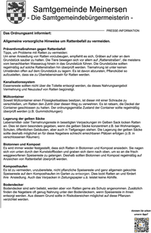 Auch wenn die Samtgemeinde Meinersen Vorkehrungen zum Schutz vor Schädlingen trifft und sich auch um die Beseitigung einzelner vorkommender Meldungen kümmert,