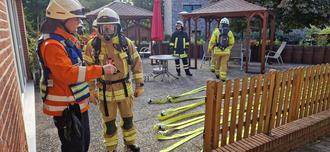 In diesem Jahr zeichneten der Ahnser Ortsbrandmeister Heino Kleiß und der Leiter der Gruppe des Einsatzleitwagen, Christian Köhler, für die Ausarbeitung der Übung verantwortlich. Waren es in den vergangenen Jahren zumeist über das Samtgemeindegebiet verteilt liegenden Aufgaben, die angefahren und bewältigt werden mussten, stand in diesem Jahr das Altenheim in Ahnsen im Mittelpunkt der Übung. „Wir sind dabei, ein neues Funkkonzept einzuführen“, so der Samtgemeindebrandmeister Sven J. Mayer. Dieses sieht vor, dass gerade bei Großschadenslagen verschiedene Bereiche der Einsatzstelle auf unterschiedlichen Funkkanälen arbeiten. „Ein solches Konzept muss geübt werden.“ Und dafür eignete sich die groß angelegte Übung in dem Altenheim. „Wir haben als Szenario eine Verrauchung angenommen, sechs Personen werden in dem Gebäude vermisst“, so Heino Kleiß, der auch Einsatzleiter war. Für nahezu alle anrückenden Kräfte gab es zunächst einen Bereitstellungsraum auf der Müdener Straße. Von dort aus wurden die einzelnen Einheiten gezielt mit einem Auftrag an die Einsatzstelle geholt. „Dadurch haben wir ein Fahrzeugchaos in der relativ engen Straße vor dem Altenheim verhindern können“, so Kleiß. Außerdem bildete die Einsatzleitung zwei Brandabschnitte, in denen Atemschutzgeräteträger auf die Suche der vermissten Personen – in Form von Übungspuppen – gingen. Ein weiterer Abschnitt wurde eingerichtet, um ausreichend Löschwasser aus der Oker über eine lange Wegstrecke an die Einsatzstelle zu transportieren. In einem vierten Abschnitt fand die Betreuung der geretteten Personen statt. Systematisch wurde das Gebäude von den Atemschutzgeräteträgern durchsucht und so alle vermissten Personen gefunden und gerettet. „Die Bewohner sind in dem Haus geblieben und haben die Arbeit der Feuerwehr aufmerksam beobachtet“, so Kleiß. Einen besonderen Dank sprach er dem Besitzer Alexander Müller aus. Dieser habe nicht nur das Gebäude für die Übung zu Verfügung gestellt. Im Anschluss ließ er es sich nicht nehmen, die Einsatzkräfte der Feuerwehr mit Bratwurst und Getränken zu bewirten. Übungsleiter Christian Köhler zeigte sich sehr zufrieden mit dem Ablauf der Übung.