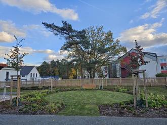 Ein weiteres Highlight stellt die Anlage einer Baumallee dar, die aus insgesamt elf hochstämmigen Feldahornen besteht und vom Haupteingang zur Kapelle führt. Diese bietet im Sommer angenehmen Schatten und trägt zur ästhetischen Aufwertung des Areals bei.