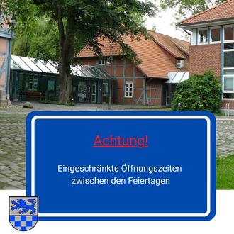 Ab dem 2. Januar 2025 ist die Samtgemeindeverwaltung wieder zu den üblichen Öffnungszeiten erreichbar.