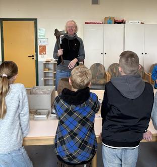 „Haben Sie auch schon einmal etwas in meinem Dorf gefunden?“ – die wichtigste Frage an diesem Schultag konnte Dr. Eichfeld immer mit einem deutlichen „Ja“ beantworten. In den Feldern rund um die Samtgemeinde Meinersen wurden bereits interessante Funde entdeckt – häufig von Bauern, die bei der Arbeit auf den Feldern zahlreiche Entdeckungen machten. Auf die Frage, wie man denn etwas richtig Altes finden kann, gab Dr. Eichfeld den Rat, aufmerksam in der Natur unterwegs zu sein und besonders