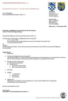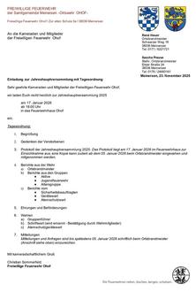 Einladungen zur Jahreshauptversammlung der Freiwilligen Feuerwehr Ohof sowie des Feuerwehrfördervereins Ohof e.V.