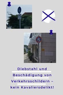 Der Ersatz und Wiederanbringung der beschädigten oder entwendeten Schilder verursachen hohe Kosten, die letztendlich von der Allgemeinheit - also von uns allen - getragen werden müssen. Darüber hinaus stellen fehlende oder unlesbare Verkehrsschilder ein erhebliches Sicherheitsrisiko für alle Verkehrsteilnehmer dar.